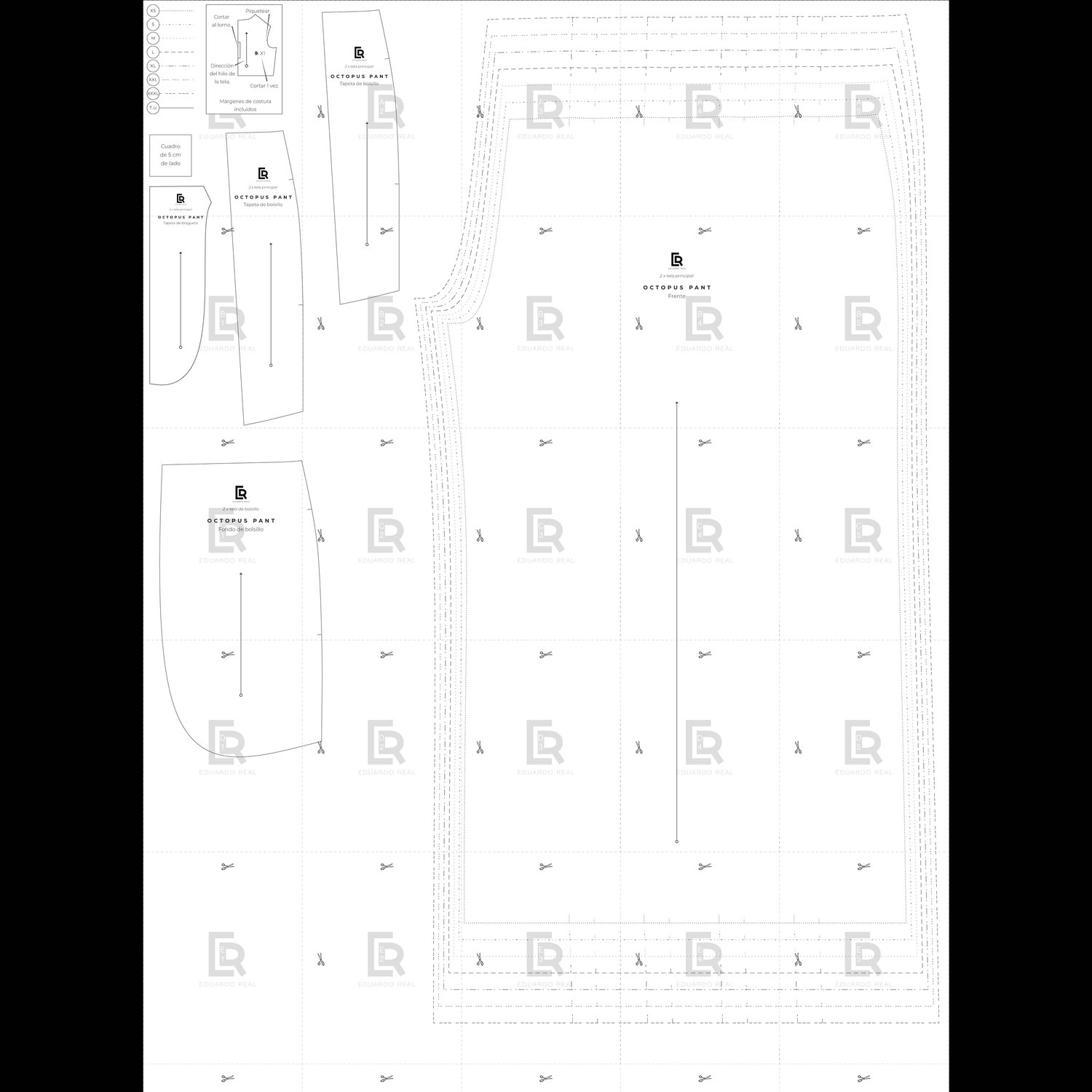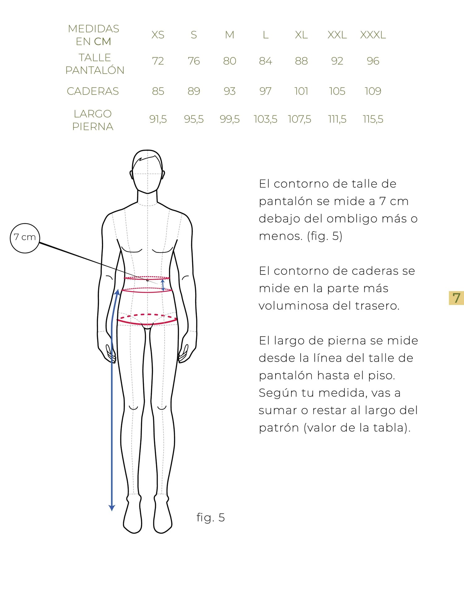 - Tela principal de 1,5 m de ancho (2,4 mts talla XS-M, 2,7 mts talla L-XXXL)