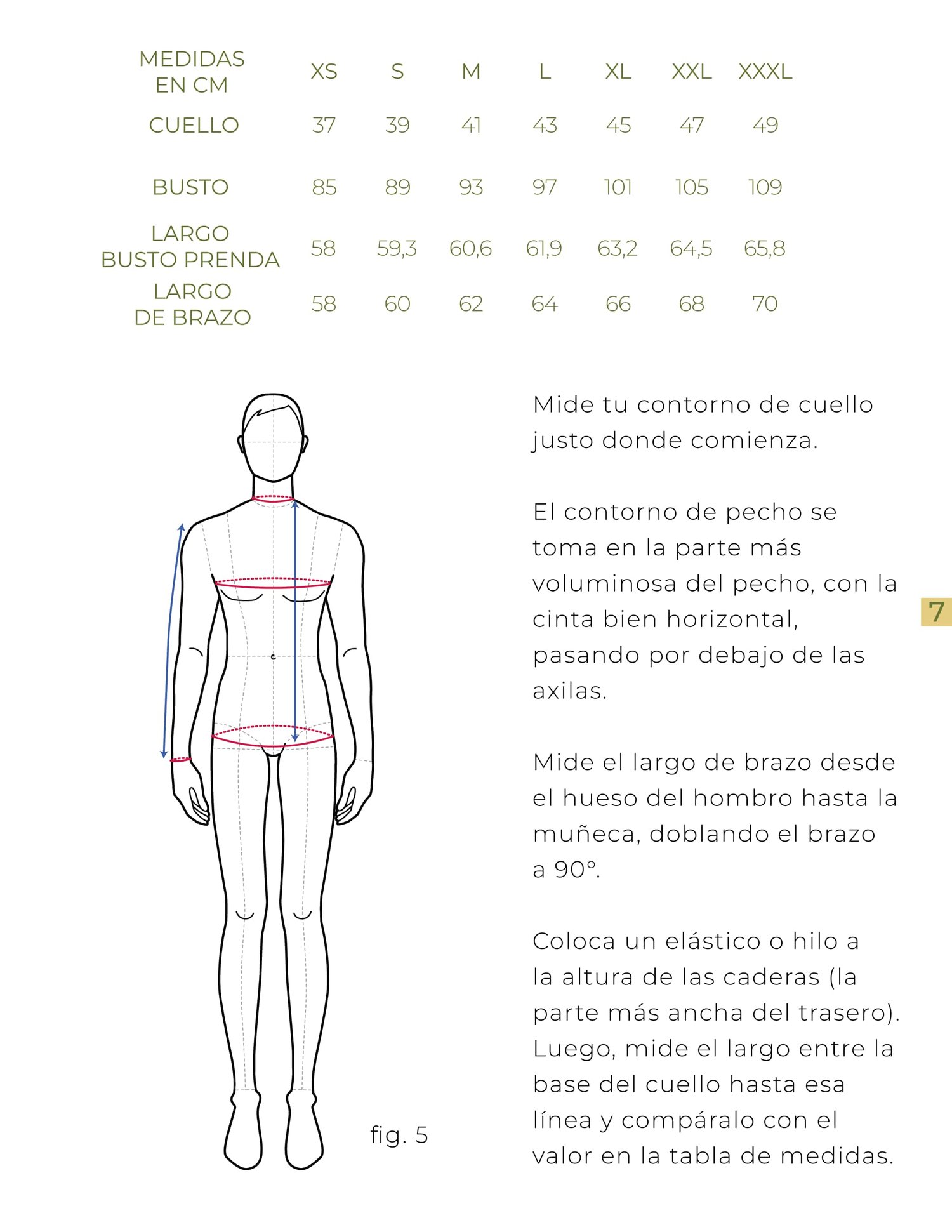 - Tabla de medidas para que puedas elegir tu talla adecuada