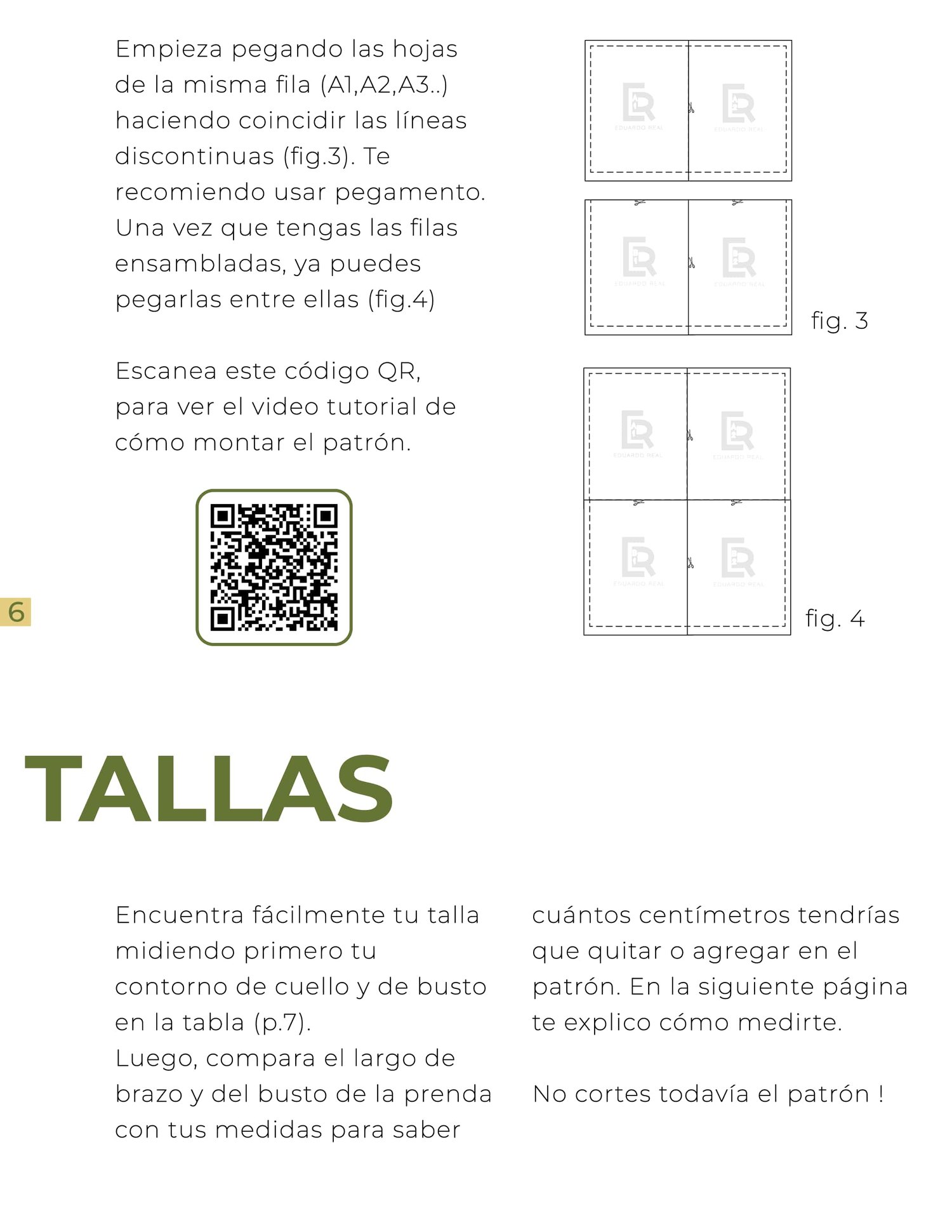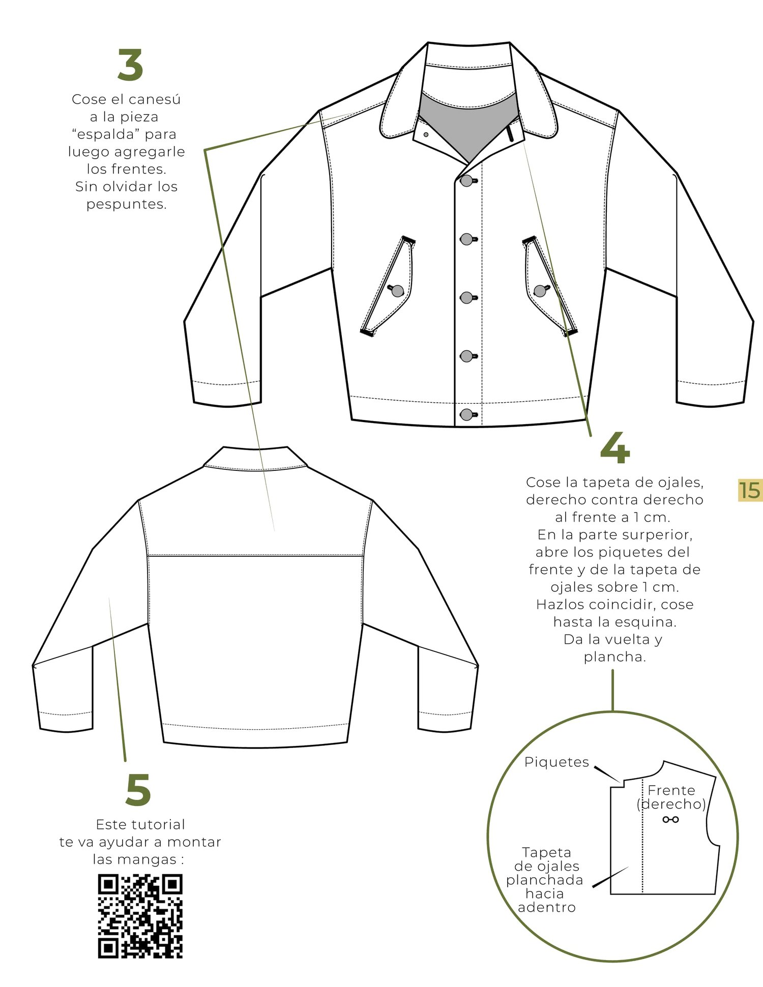 - QR Code de tutoriales videos de las etapas de confección, con fotos y ilustraciones detalladas